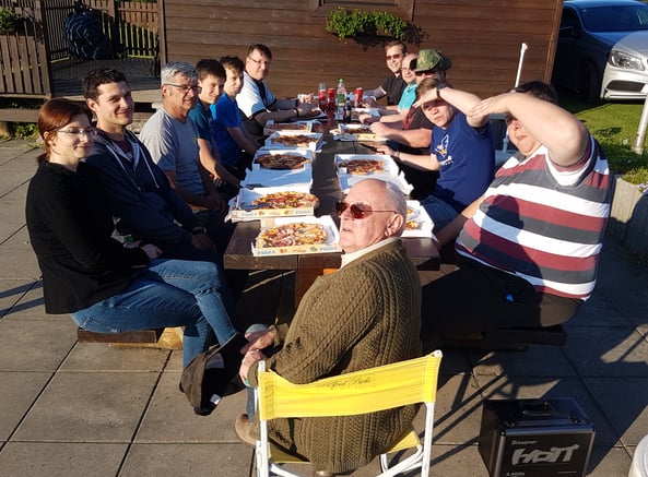 Weil man ja nicht oft genug feiern kann, hat unser Kollege zu Pizza und Getränken eingeladen.